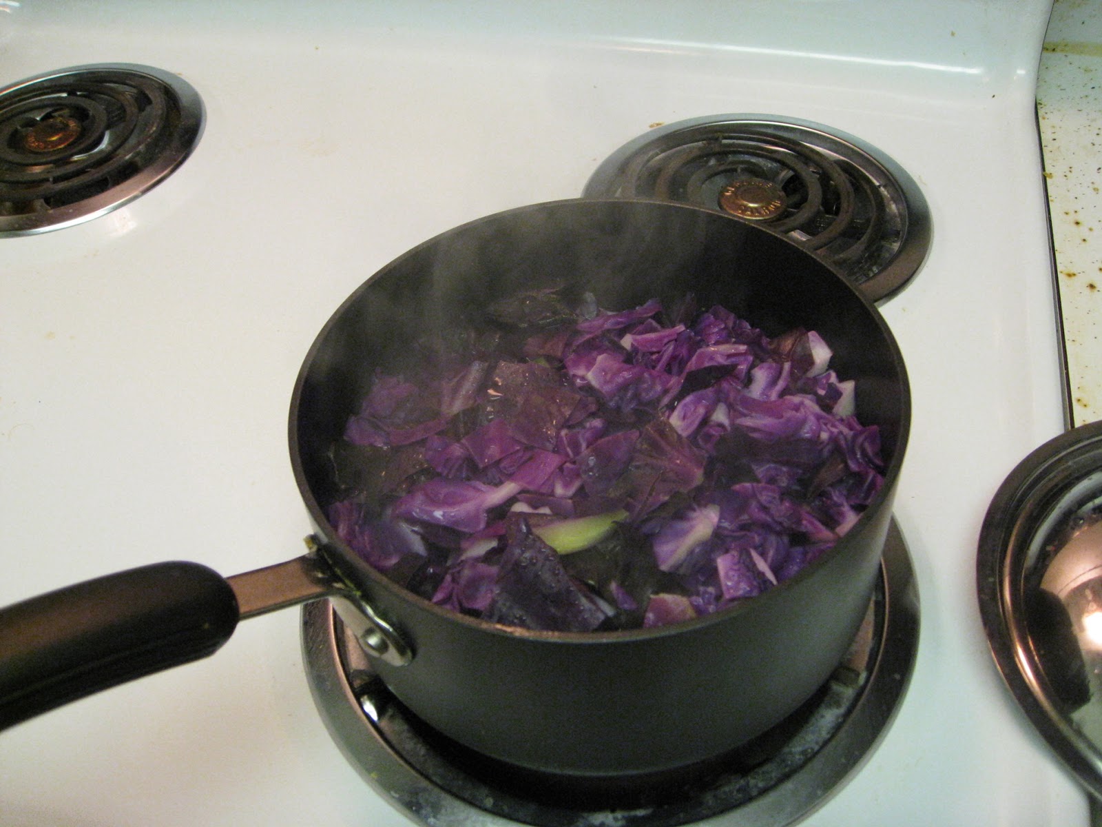 | Rödkålen lagas. |